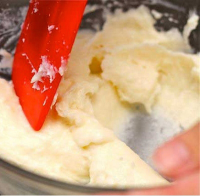 Bước 3: Sau khi hỗn hợp sữa sôi nhẹ, bơ và đường tan hết thì bạn rút hỗn hợp sữa này vào tô hỗn hợp bột nếp và bột bắp ở bước 1, trộn đều và để nguội hẳn ở nhiệt độ phòng.