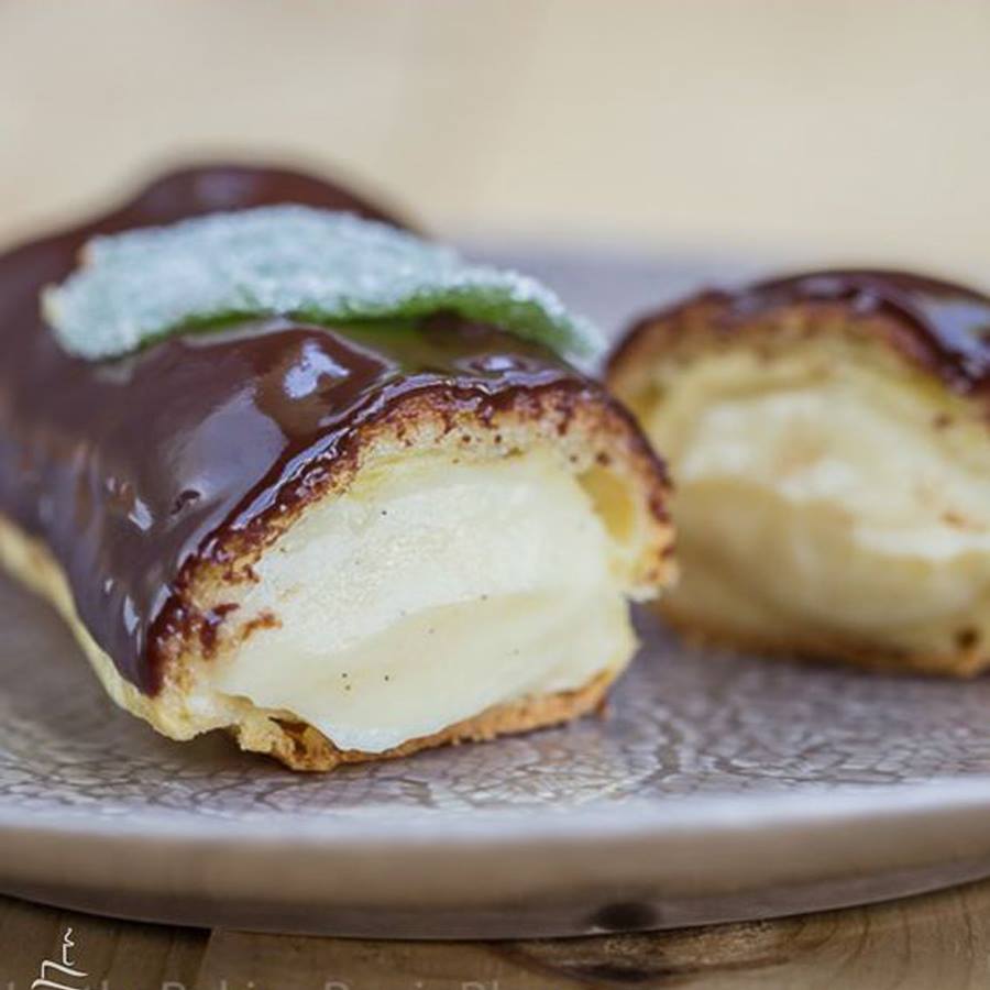 Éclair được mệnh danh là Nữ công tước Pháp, bánh có hình thuôn dài làm từ bột nhào choux (bột nhào làm bánh su kem) có nhân kem và phủ các loại kem hoặc đường đông bên trên.