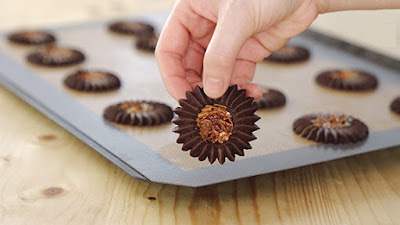 - Phần nhân caramel hạnh nhân sau khi đã đông cứng, bạn đem ra