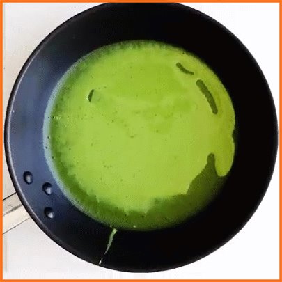 - Thoa 1 ít bơ lạt vào chảo rồi đổ từ từ 1 ít bột vào, nghiêng đều chảo để bột tạo thành hình tròn.